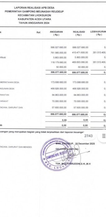 Dugaan Penyimpangan Dana Desa Gampong Meunasah Reudeup, Kecamatan Lhoksukon, Kabupaten Aceh Utara