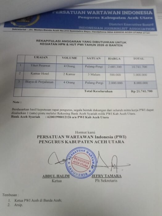 Surat ini ditandatangani oleh sejumlah anggota PWI Aceh Utara, di antaranya Jufri Abdurrahman, Zubir, Firman Fadhil, Said Aqil Al Munawar, Jamaluddin, Andri Syahputra, dan Dedi Muliyadi. Tembusan surat ini juga disampaikan kepada Ketua Umum PWI Pusat dan Dewan Kehormatan PWI.
